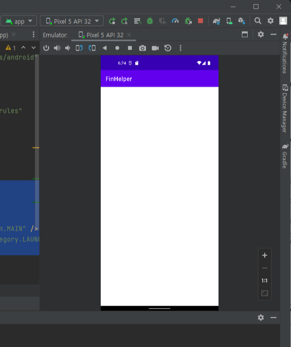 그리고 좀 기다리면 폰이 부팅이 되지. 부팅 다 되면, 실행을 눌러서 apk를 설치 실행해보자. 그럼 알아서 기본 그래들을 바탕으로 빌드 되면서 폰에 인스톨이 되고 실행이 되는거징~